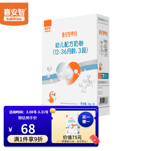 当前的位置: 首页 > 今日值得买 > 喜安智典悦3段便携装小袋装牛奶粉含乳铁蛋白DHA益生元胆碱1-3岁140g*1盒 1盒装