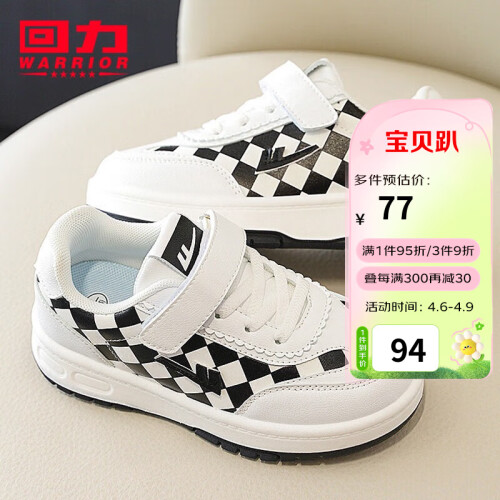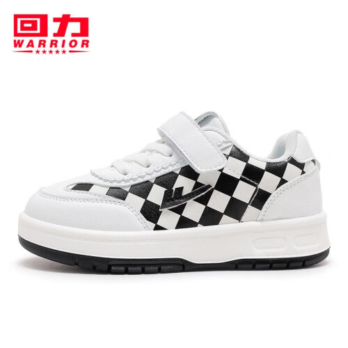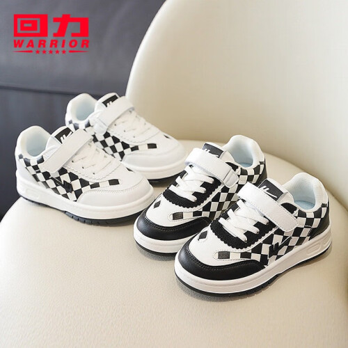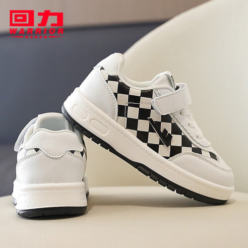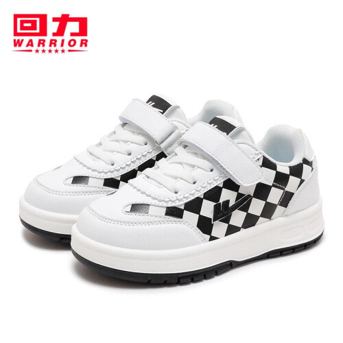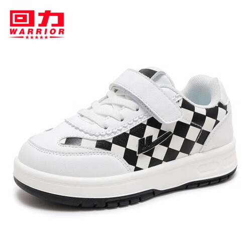 WARRIOR 回力 儿童格子运动小白鞋,优质面料,柔软弹力,轻质鞋身。便捷魔术贴,牢固易穿脱,轻松调节松紧,脚丫更舒适。