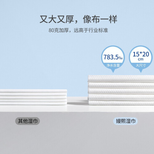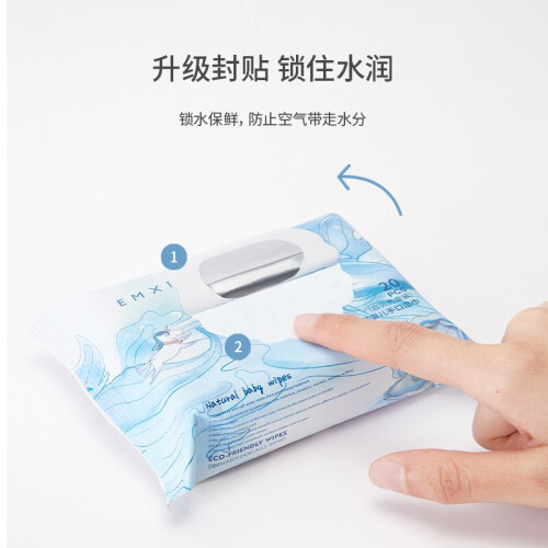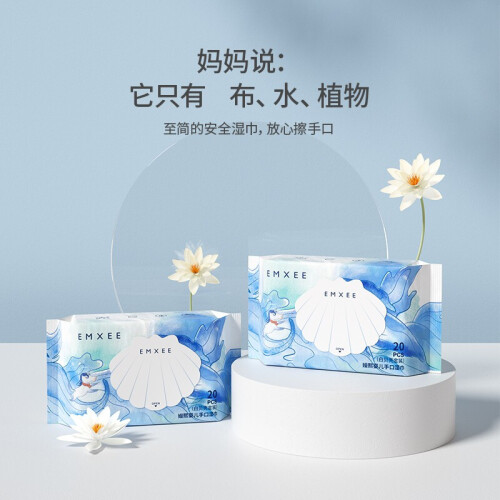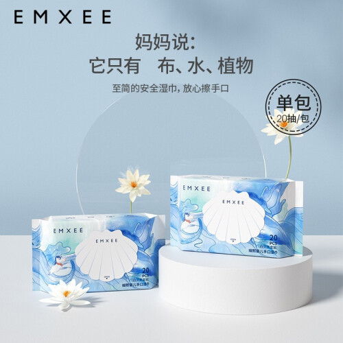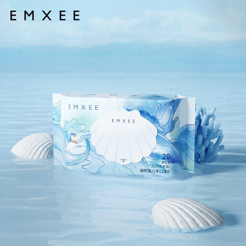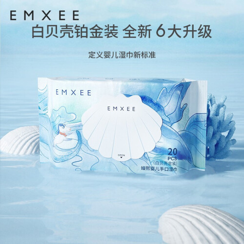EMXEE 嫚熙 白贝壳婴儿手口湿巾 20抽*12包,厚度升级加厚50%,80克加量加厚,柔韧厚实不卷边,188*140mm大尺寸。婴儿级矿物质护肤新理念,精准调配含水量,法国温泉更健康。