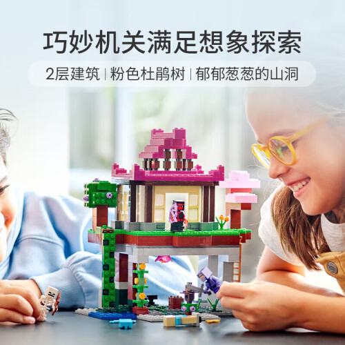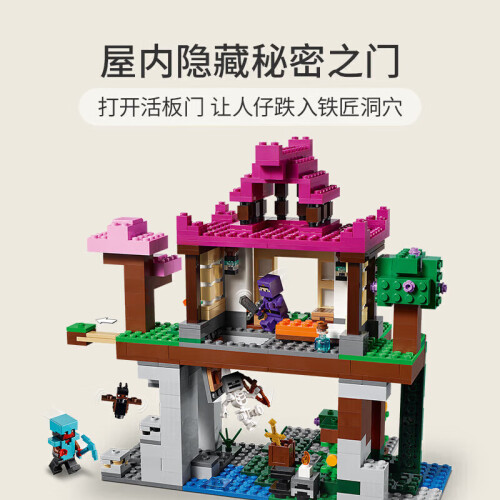 精彩纷呈的《我的世界》创造力这款可以动手玩乐的乐高我的世界套装可以为孩子们带来收获丰厚的拼搭项目、激动人心的拼搭体验和引人注目的展示模型。楼上是一个道场,《我的世界》武士在这里生活和训练。楼下是一个铁匠洞穴,设有铁砧、炉子、装甲架等,可供孩子们打造和修理武器。连通两个楼层的是一个活板门,可通过按压树下的模块来操作。这款壮观的套装应有尽有,甚至还有激烈的战斗——本套装内含一个四处劫掠的骷髅。此外,当玩家们希望变换玩法时,可以将楼层分开,重新进行布置,创造全新的游戏体验。