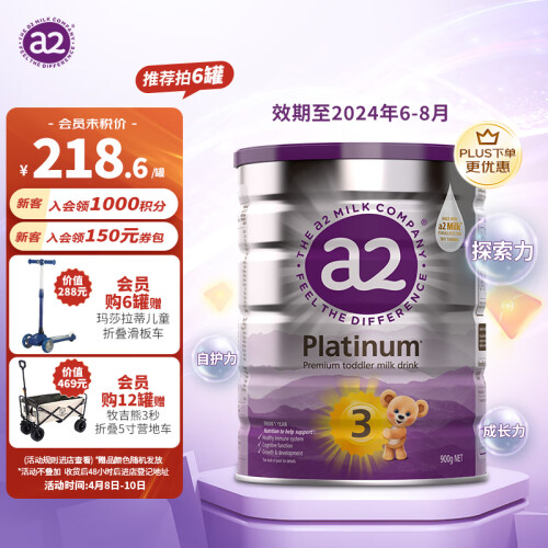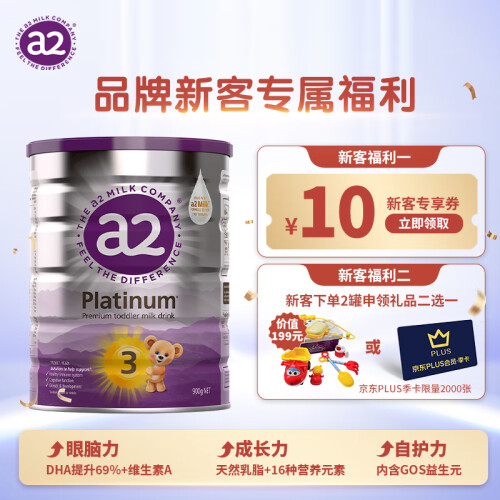 这款白金系列婴儿配方奶粉,含有a2 beta酪蛋白、植物油、乳糖,更好吸收,有利于培养健康的血液,提高免疫系统,视力,肌肉和神经功能,保持皮肤健康,促进身体各部分机能的健康成长,研究人员发现,a2牛奶比普通牛奶对人体健康更加有益,而且引发的不良反应更少;A2白金系列幼儿配方奶粉100%纯天然,比其他奶粉额外配上了OMEGA-3、DHA益生元、铁、钙和维生素D,帮助支持大脑和眼睛发育,促进肠道和免疫系统发育,支持骨骼和牙齿发育。