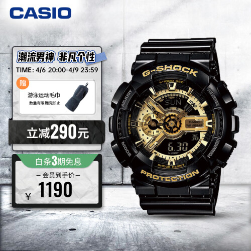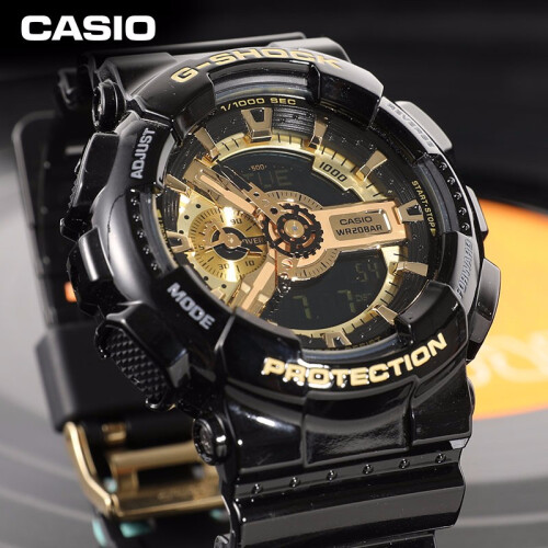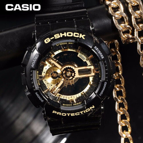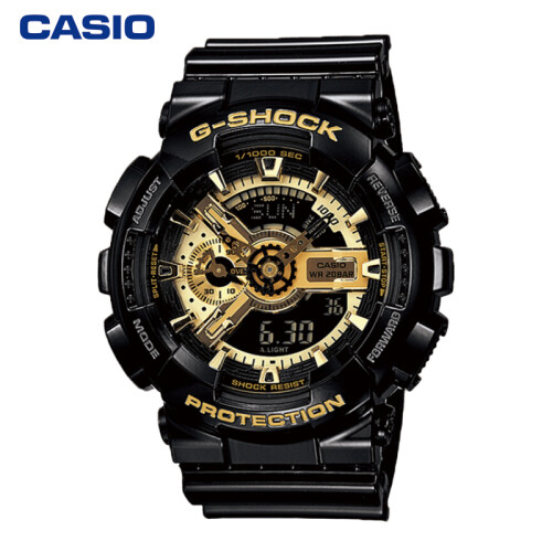 秉承G-SHOCK不断进化,追求强韧的理念,卡西欧推出Black × Gold Series 黑×黄金系列。GA-110GB则是以层次感的款式,并配备1/1000秒的秒表计速功能以及防磁功能,功能方面,G-SHOCK的耐冲击、防磁、防水200米。另外还有常见的自动LED、世界时间(48个城市)、闹钟、自动LED照明等。