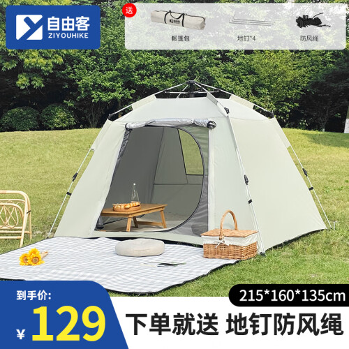 ZIYOUKE 自由客 户外全自动帐篷 2-3人基础款,一提即开省时省力,仅需拿起一瓶矿泉水的力气。全封闭防雨设计,可在露营期间将四周全闭合,有效保护帐内不被雨水侵入。