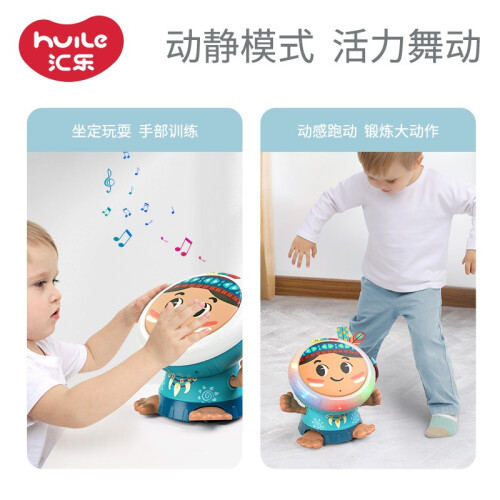 这款Huile TOY'S 汇乐玩具 宝宝音乐手拍鼓,拍打鼓面练小手,小鼓随音乐节奏摇摆舞动,多种音效/语音互动,声光音乐互动更有趣。小鼓跑动表演,热情洋溢的民族风,吸引宝宝锻炼大动作,活泼开朗又自在。