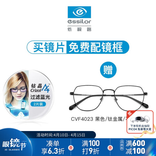 当前的位置: 首页 > 今日值得买 > 依视路 钻晶A4依视美1.67非球面智能防蓝光镜片过滤有害蓝光网上配镜 钛+金属-全框-4023BK-黑色