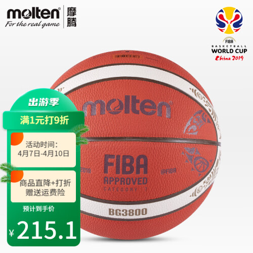 Molten 摩腾 7号PU篮球 B7G3800-1-M9C 世界杯复刻版,FIBA认证,室内外兼用,中胎为内部提供结构、形状的保护,气密性好,气压稳定,有效提升手感。