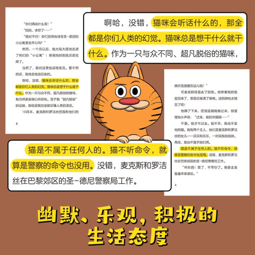 用易读的篇幅和语言,使小学生在有限的阅读水平下也能享受阅读的魅力。走进侦探猫的世界,打开独立阅读之门。每一本扑所迷离的案件,环环相扣的逻辑思维,幽默猫咪的超多内心戏,令人珍贵的友谊。情感共鸣,在探案过程中,更注重人性和人情味,使故事不仅精彩好看,更生动感人。