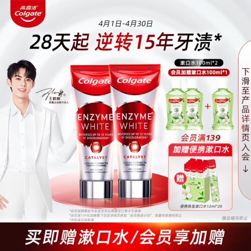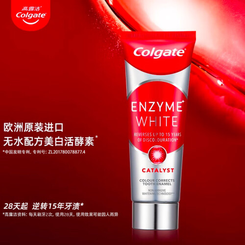 高露洁(Colgate)这款酵素亮白牙膏,采用活性酵素美白配方,深入溶解内外源牙渍,帮助还原牙齿亮白,不伤牙釉质。泡沫丰盈,带有薄荷香气。