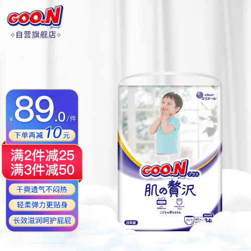 GOO.N 大王 奢华肌滋润保湿拉拉裤系列,长效锁水,滋润皮肤,快速吸收,宝宝尿液,柔软贴身,宝宝穿戴更舒适,透气腰围瞬间化解湿闷浊气,四重呵护,不怕干燥和刺激,原装日产,匠心工艺。