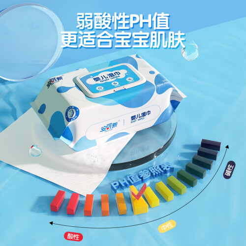 此款湿巾采用高质量绵柔无纺布,舒适柔软,拉扯不易变形,接近婴儿肌肤的ph值纯净温和,多重净化EDI水,层层过滤滋润清洁,无甲醛、无荧光、无酒精添加,给宝宝真正的安心呵护。