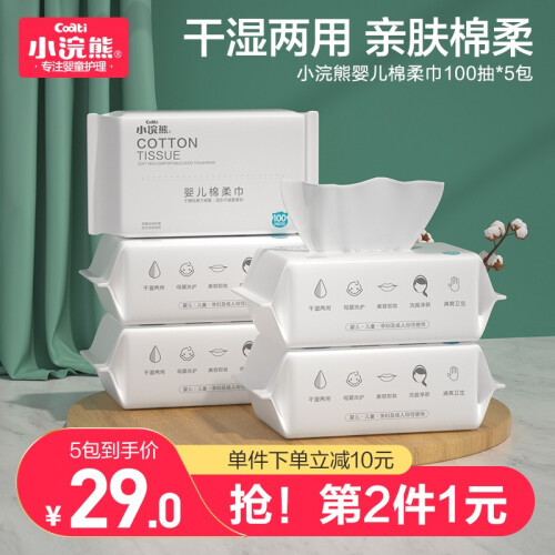 当前的位置: 首页 > 今日值得买 > 小浣熊婴儿棉柔巾一次性洗脸巾新生儿宝宝干湿两用洗脸巾100片x5包