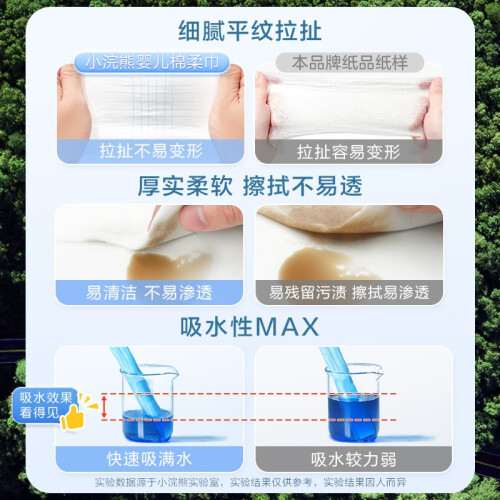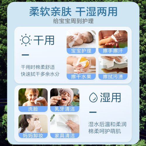 小浣熊 婴儿棉柔巾采用优质无纺布,绵柔触感,吸水性强,柔韧不掉絮,干湿两用,全家都可共享,携带方便,规格:200*130mm。