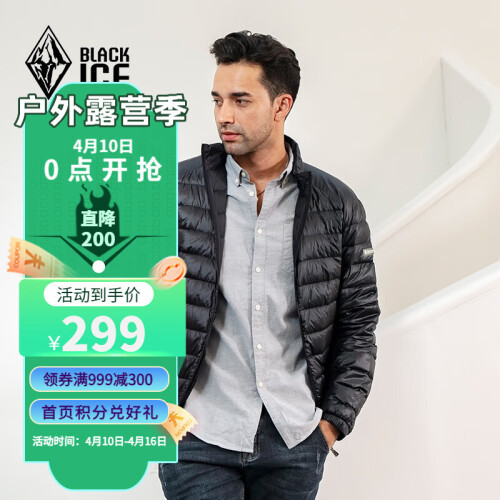 BLACK ICE 黑冰 F8901 男士立领羽绒服 ,填充物90%灰鸭绒,蓬松度650+立领样式,绗缝工艺,2侧配有拉链口袋。