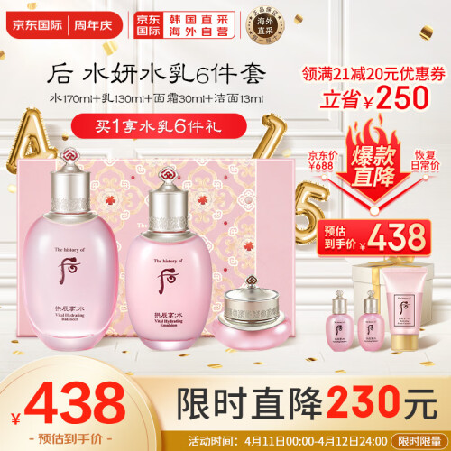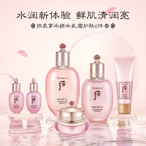 WHOO后是*级护肤品牌,属于LG健康生活旗下,融入了传统宫廷护肤配方及中医护肤医学,其使用效果好,感受细腻获得了大量的好口碑,在中国的人气日渐高涨,也是很多出国游购买的护肤品首选品牌。WHOO后水妍系列是WHOO后最补水最清爽的一套。这个这款水乳套装含有净化皮肤的白金纳米水和银河水,采用红华肌丹与清气益寿丹等宫廷配方,能充分给肌肤补水,使皮肤恢复湿润柔嫩的状态。套装包含水沄平衡爽肤乳110ml,水沄平衡爽肤水150ml,水沄面霜20ml,水乳小样各一支20ml,水分面膜30ml。