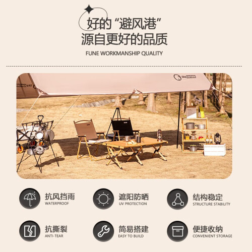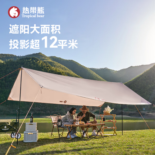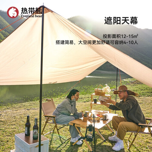 热带熊 户外露营天幕 TM-01,遮阳大面积,投影超12平米。耐磨抗撕裂,经久耐用,210D牛津布在提升抗撕裂,同时增加了透气性,防水PU3000+。