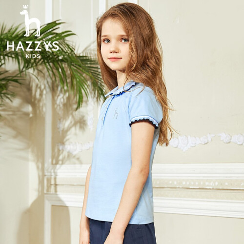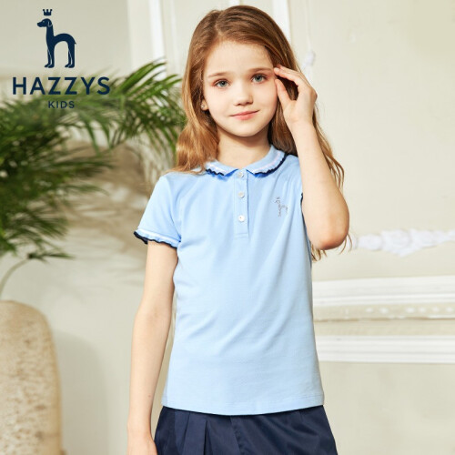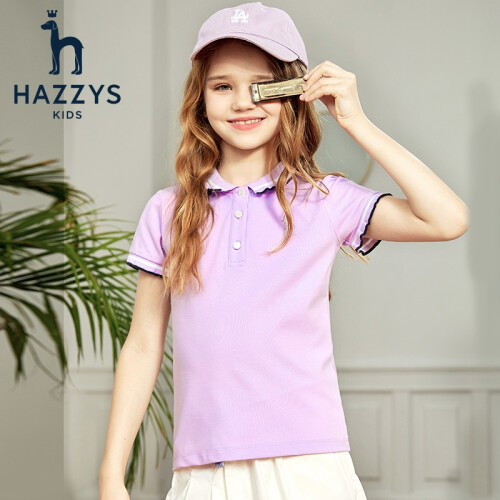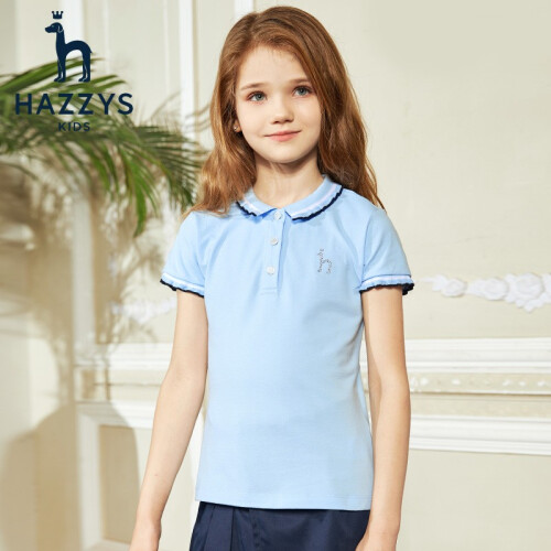 HAZZYS 哈吉斯女童短袖polo衫,甄选精良面料,亲肤健康吸汗透气,穿着凉爽舒适,时尚的POLO翻领设计,撞色拼条,活力动感,后领圈牛津布加固,简约精细挺括有型,开叉下摆个性出彩,带来无束缚感的穿着体验。