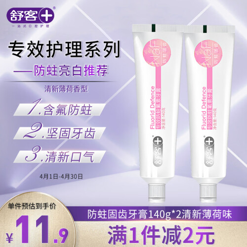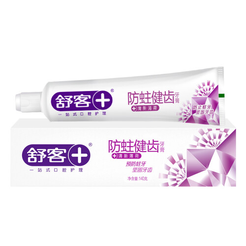 Saky 舒客 防蛀固齿 牙膏 添加少量高钙氟健齿以及木糖醇成分,能够减少牙齿酸蚀、防止小黄斑、令牙齿更加坚固,膏体细腻温和,口感清新。规格140g。