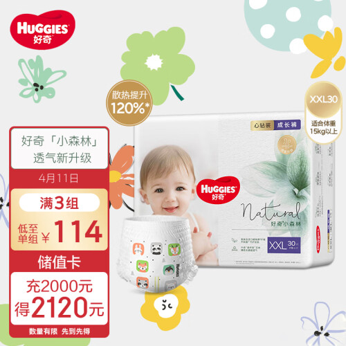 HUGGIES好奇纸尿裤诞生于1978年,是有140年历史的美国金佰利旗下的纸尿裤品牌,专为确保宝宝的舒适穿着和自在活动而设计,旗下有金装、铂金装、心钻装等系列拉拉裤。本款心钻装拉拉裤采用百分百欧洲进口植物织造层,经工艺臻萃匠心织成与宝宝肌肤接触的面层,模拟天然呼吸生态,同时加以3D凹凸工艺,更容易排出闷气。芯体选用0.2cm的“裸感芯”,舒适更透气,让小屁屁自由呼吸。同时,好奇有严格的安全品控,经第三方测试机构检测,0刺激、0致敏、0添加荧光增白剂,纯净安心。在腰围材质方面,也选用了好奇特有的蓬蓬云抱腰围,超柔贴身,倍护小肚肚不易留红印,胖宝宝也不勒。