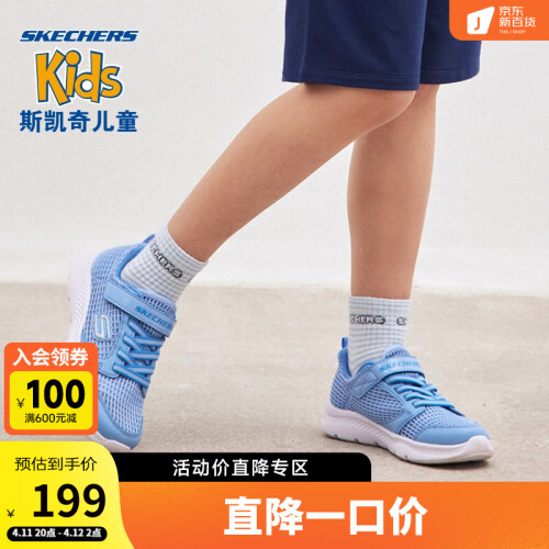 SKECHERS 斯凯奇 女童网面运动鞋 664168L,配色简单,适合夏日搭配,鞋身采用网布材料,大网孔设计,舒适透气,一片式魔术贴搭配松紧带设计,方便穿脱,柔软鞋垫,穿着脚感舒适,贴合足底缓震回弹双脚,不易感到疲劳,价固后跟,稳固鞋型,呵护宝宝双脚,多种色彩,时尚百搭