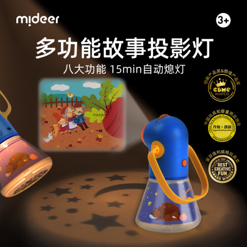 这款弥鹿投影故事小夜灯有8个童话故事,64个故事情景,可以和孩子开启亲子故事小剧场,画面丰富,充分调动孩子的想象力和语言表达能力;还能切换星空灯和小夜灯,15秒定时关灯;除此之外,轻松手提设计,小灯塔造型,好玩好看。