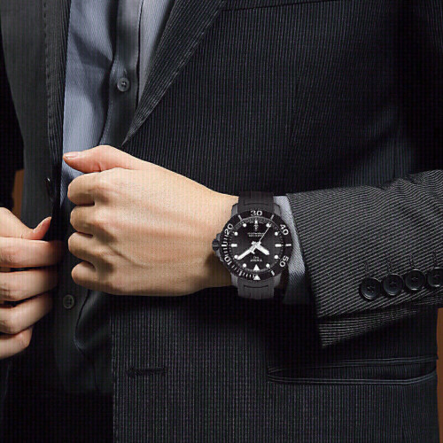 腕表设计大气刚毅,与潜水爱好者孜孜不倦冒险的精神不谋而合,腕表后盖镌刻着海马世界,象征着佩戴者能够如水下生物一般,在曼妙的海底世界游刃有余,勇往直前。