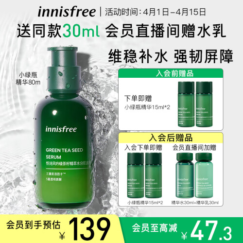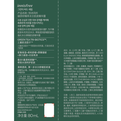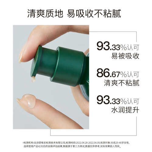干燥季节化妆时,可以把这个精华当作妆前打底保湿度,纯清茶清凉味道,超好闻一点点拍在脸上瞬间吸收,不油腻,而且带有控油效果。悦诗风吟有名的3秒小绿瓶,要在洗脸后3秒内涂脸上,这样才能锁住脸部水分。这也就是它“3秒”小绿瓶名字的由来。