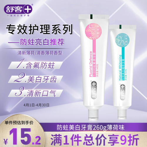 当前的位置: 首页 > 今日值得买 > 舒客专效防蛀美白牙膏组合(清新薄荷)260g 防蛀固齿 新老包装随机发