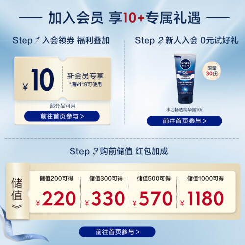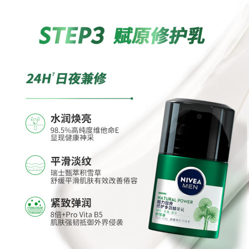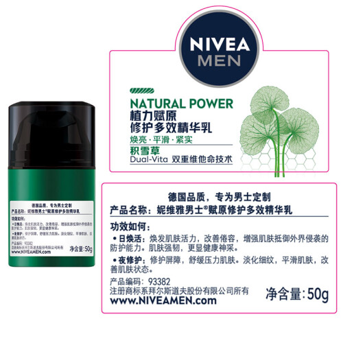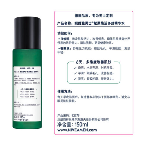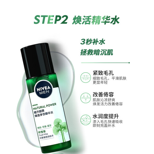 NIVEA MEN(妮维雅男士)是全球护肤品与身体护理品品牌妮维雅(NIVEA)旗下的附属品牌,它隶属德国拜尔斯道夫公司BeiersdorfAG(简称BDF)。1922年,妮维雅男士推出首款专为男士设计的护肤产品。NIVEA MEN妮维雅男士推出的这款水活畅透精华露,蕴含小分子玻尿酸,可密集保湿锁住水分。添加的深海黄金藻成分,呵护肌肤,改善肤质,帮助缓解粗糙干纹、水油失衡、暗淡无光等肌肤问题。洁面后使用,能够唤醒肌肤,另肌肤更显年轻光滑。清透露状质地,一抹化水,能快速吸收,滋润不粘腻,不含酒精,适合多种肤质