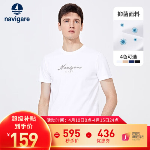 navigare 纳维凯尔 抑菌系列 男士短袖T恤 1325503525,材质采用93.6%棉,6.4%氨纶,AAA级抑菌效果,亲肤透气打造舒适环境,四色可选。
