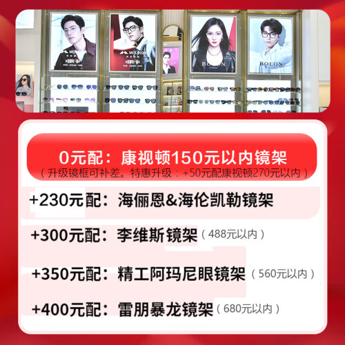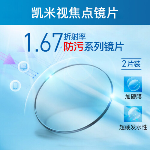 此款镜片采用升级款U2膜层1.67折射率,能有效防水防尘高清透亮,更易于清洁,U6膜层防水防尘耐磨还带防蓝光功能,同样高性价比。