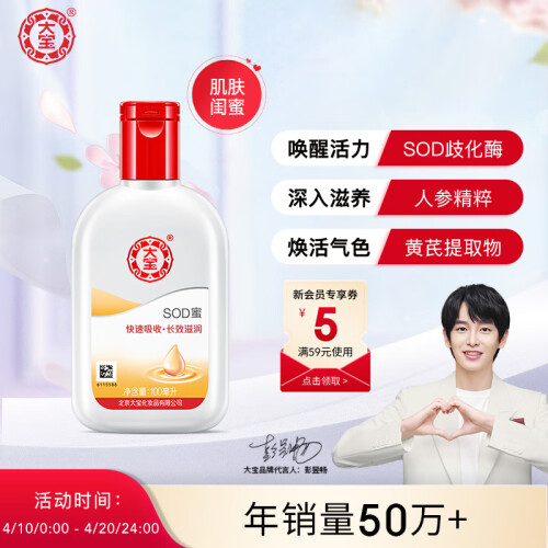 大宝是家喻户晓的品牌,这款SOD蜜,无刺激配方,适合各种肤质的人使用,含有黄芪精华,延展性好,质地清透,大宝以低价又实用的产品,赢得口碑。平时用来抹手、身体,糙一点的汉子还会用来抹脸。是一款全家适宜的产品。