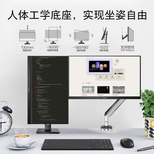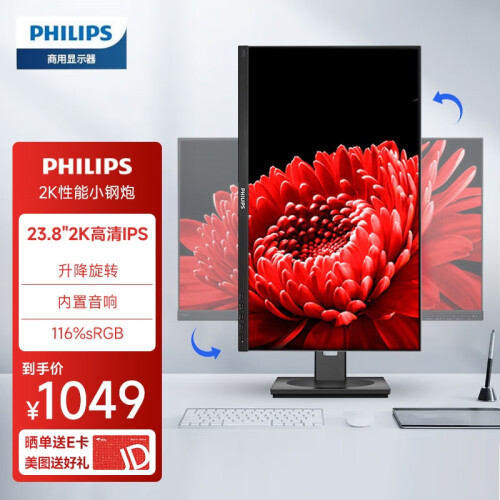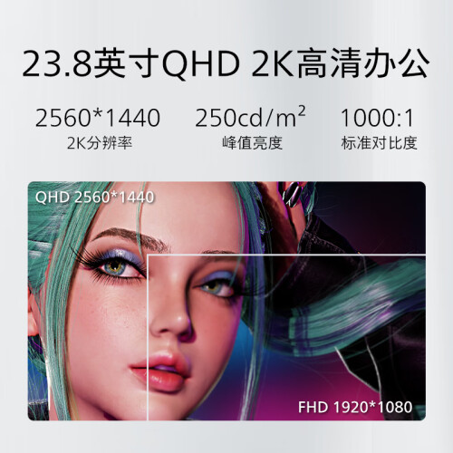 23.8英寸IPS硬屏,2K分辨率,75Hz刷新率,支持116%sRGB、99%NTSC色域,支持Adaptive Sync自适应,画面绚丽多彩。三边微边框设计,支持旋转升降。低蓝光不闪屏,内置喇叭独立扬声器。