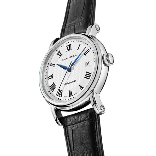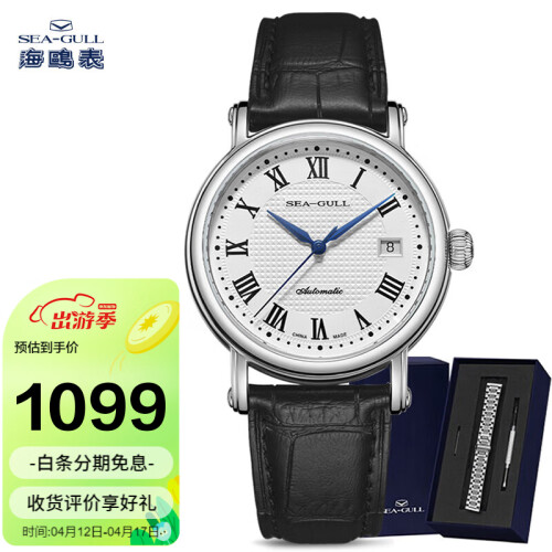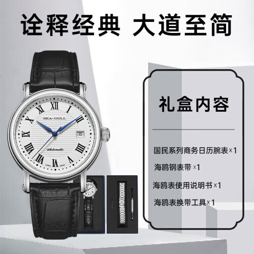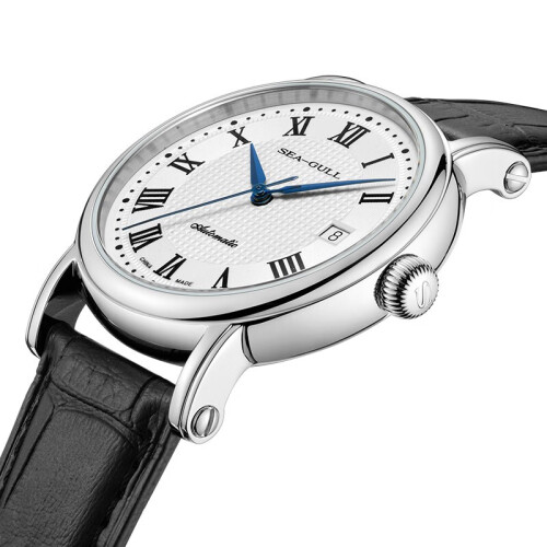 这款海鸥 819.368 男款自动机械表采用ST2130机芯,26石,摆频28800次/时,属于海鸥研发的一款单日历机芯,仿制大名鼎鼎的ETA2824,从目前情况来看这款机芯的稳定性、精度都非常不错。316精钢表壳,蓝宝石镜面防刮花,背透看起来更漂亮,白盘蓝针配上黑色真皮表带也是文艺十足。直径38.5mm,不含把头,厚度10mm,防水50米。