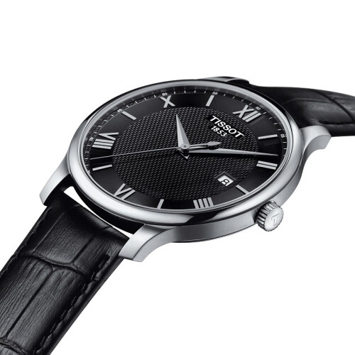 TISSOT 天梭 T063.610.36.038.00 俊雅系列 男士手表,天梭俊雅系列整体设计曲线具有简约美学感,与1950年代的复古风格结合,散发浓郁的文艺气息,这款石英表采用ETA F06.111石英机芯,走时准确,拱形抗刮伤蓝宝石玻璃表镜,扭索状装饰表冠和罗马数字与条形刻度的细节处理,进一步提升经典感。