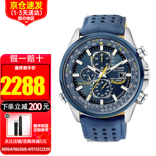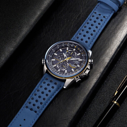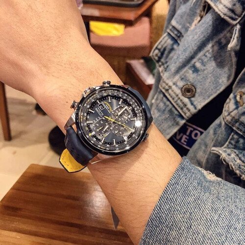 西铁城公司的前身为日本尚工舍时计研究所,创立于1918年。CITIZEN品牌的计时产品始于1924年,当时的东京市长后藤新平先生期望这款苦心研制的日本制造的怀表能够成为“为CITIZEN,也就是全世界全体公民所亲近,所喜爱”的产品,因此将其命名为“CITIZEN”。“西铁城时计株式会社”(CITIZEN Watch Co. Ltd.)在1930年正式成立。CITIZEN 西铁城 AT8020 男款腕表属于超级空中之鹰系列中的BLUE ANGELS蓝天使表款,从名字也能猜出,这是一款飞行员系列计时腕表。延续了空中之鹰粗犷豪放但不失细致的风格。这款腕表表壳经过蓝离子电镀处理,搭载Eco-Drive光动能机芯,任何可见光源的存在就能为其充电,满电后在无光环境也可提供2个月的精准走时,既环保又省事。支持世界26个城市电波自动精确对时(欧美日中),蓝宝石防刮水晶玻璃表镜,表盘宽度43mm,三眼计时功能,3点钟位置显示日期,200米防水。