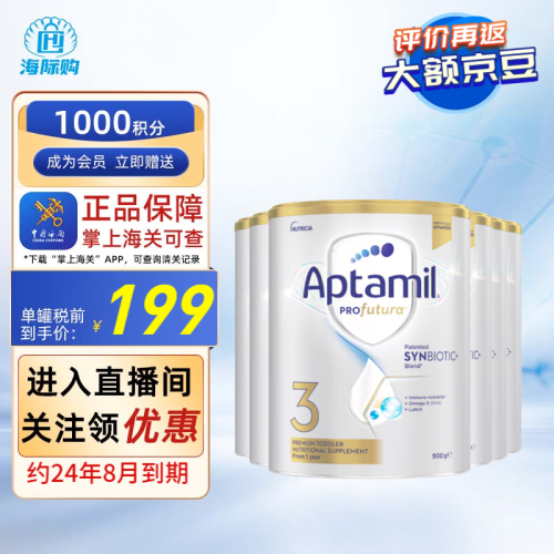 这款为澳洲Aptamil 爱他美白金版3段婴幼儿奶粉,相比金装版改良了配方,蕴含专利“低聚糖益生元”组成的合生素,更适合调节宝宝肠胃,优化了DHA、ARA含量配比,更利于宝宝的脑部发育和眼部发育,低蛋白水平促进婴儿生长水平更接近于母乳喂养的宝宝,尽量减低在宝宝5岁前成为超重儿童的可能性。规格:900g。