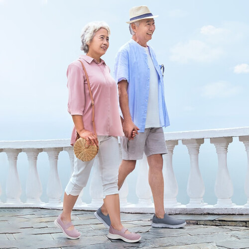 足力健 中老年轻便休闲鞋 221607W,减重设计,抬脚轻松无负担;不易滑鞋底,妈妈出行更稳当,方形鞋口易穿脱,后跟”小靠枕”,柔软不磨脚。