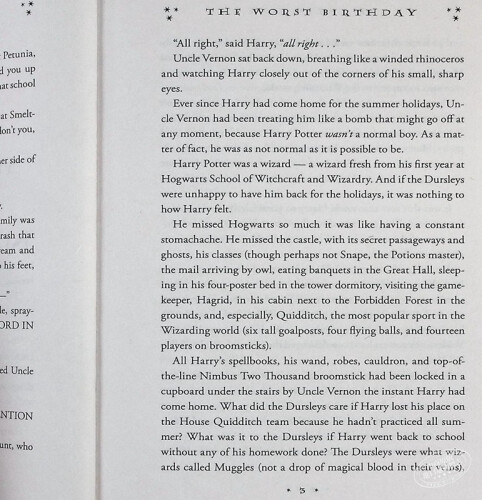 《哈利·波特》是英国女作家J.K.罗琳创作的系列小说,共7部。《哈利波特》共被译成近七十多种语言,在两百多个国家累计销量达三亿五千万多册,位列史上非宗教、市场销售类图书首位。整套书遣词通俗易懂,剧情引人入胜,是寓教于乐的好读物,非常适合儿童提高英语阅读能力。《哈利波特》英文原版共有四个版 本:美国精装版、美国平装版、英国平装(成人封面)版、英国平装(儿童封面)版,这里推荐的是美国平装版。