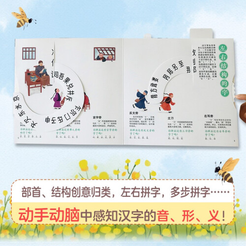 《汉字真好玩机关书(上)(下)》是为处于识字敏感期的幼儿园中大班以及刚上小学的小朋友精心设计的一套汉字学习机关书。它*的特点是以部编版一年级语文教材中的500多个基础汉字为依托,精心设计了130余个立体互动机关,通过推一推、拉一拉、翻一翻、 转一转等多种有趣好玩的互动形式,让孩子在轻松愉快的游戏中建立对中国汉字的兴趣,多方面地了解汉字的结构以及字形的演化。