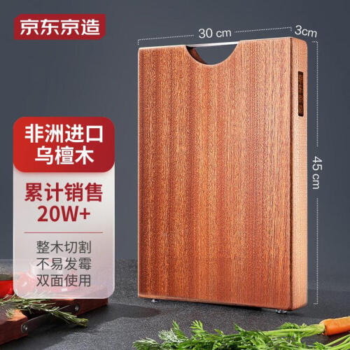 天然整木打造,无拼接,乌檀木结构细腻均匀,密度大、硬度高,耐腐蚀防霉菌较好,历经3个月熏蒸,避免开裂、长虫,精细打磨,无毛刺,橄榄油处理,专业烘干杀菌处理。可双面使用,避免生熟食物交叉感染,安全健康。