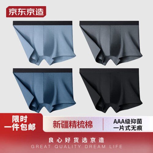 京东京造 男士内裤 4条装 6941592710752,透气抗菌体验,呼吸孔设计,高棉指感受,透气素材,体贴变形,均匀受力,动静皆宜,数次调整只为舒适,3D立体版型裁剪贴合更舒适。