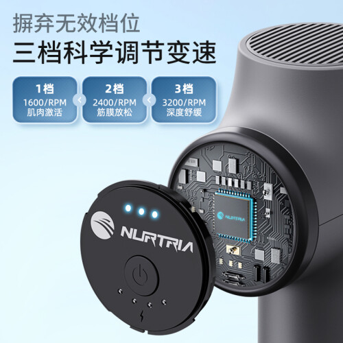 Nurtria 筋膜枪 Nurtria-N3,是加拿大的品牌,常年与加拿大GQ冰球队合作,在运动康复领域深耕多年。此款筋膜枪采用全新设计的NP55无刷电机,可持续输出高达25kg的推力、12mm振幅,轻松抵达深层肌肉。空气动力学设计,可以快速散热,延长机器的使用寿命。6芯高效能锂离子电池,持续工作480分钟续航,每天使用15分钟,可连续使用1个月。区别其他塑料传动件,Nurtria 筋膜枪采用高精度的合金传动组件,不易磨损,音量小,寿命长。