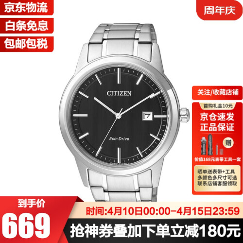 西铁城的核心技术就是光动能,其可吸收任何可见光源并转化成动能带动手表持续运,采用的是寿命长达15-20年左右的充电电池,以经久耐用、技术可靠受大家的欢迎。这款CITIZEN 西铁城AW1231-58E 男士光动能腕表,采用E111机芯,不锈钢表圈,耐刮擦晶体表镜,带有日期显示功能的典雅黑盘,表径40mm,厚度9mm,日常30米防水。