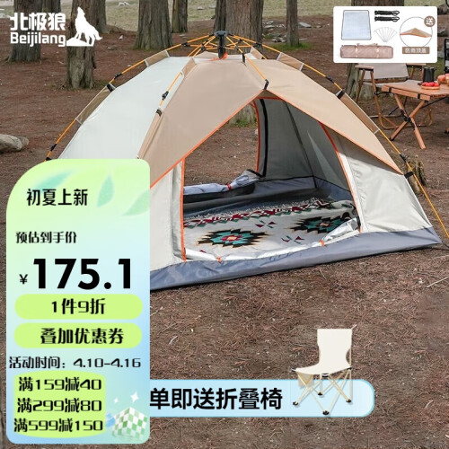 当前的位置: 首页 > 今日值得买 > 北极狼全自动帐篷户外防雨野营双人双层免搭建3-4人野外露营帐篷套装