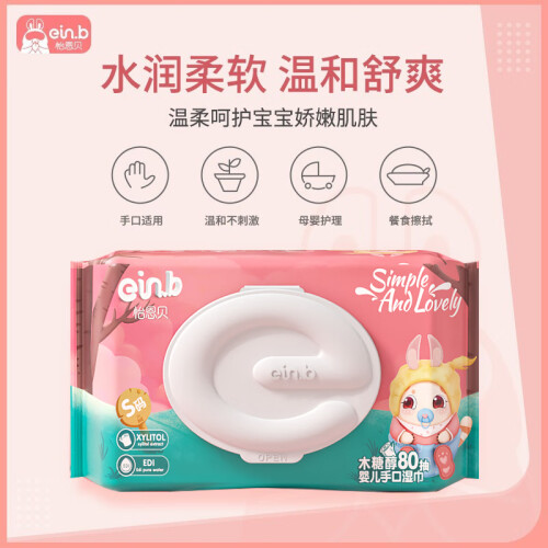 einb 怡恩贝旗下产品线主要以婴儿洗护用品为主,这款einb 怡恩贝 婴儿手口湿巾 80片*10包无酒精无添加,采用RO纯水,口感温润,无化学成分,可清洁宝宝的小手和口腔。严选自然植物材料,不连抽,不起坨不浪费。