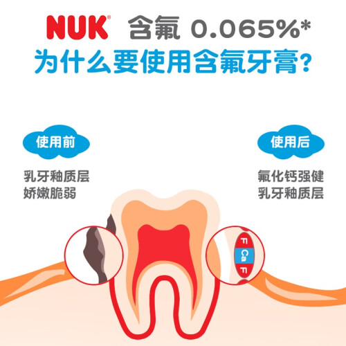 此款NUK 儿童低氟防龋齿牙膏 50ml,不添加防腐剂,成分温和不刺激。使用过程泡沫细腻轻盈,全方面深入清洁口腔,呵护牙齿健康。