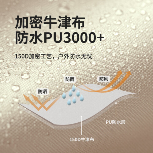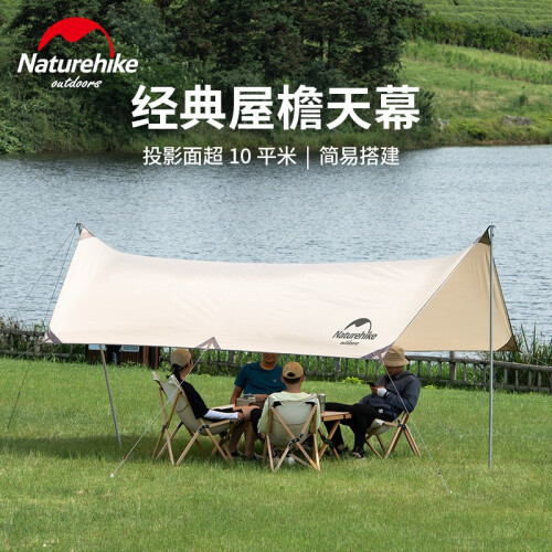 Naturehike 挪客户外 露营帐篷,加密牛津布,防水PU300+,150D加密工艺,户外防水无忧。配备粗壮天幕杆,杆壁加厚,更牢固耐用。UPF50+防紫外线,科学检测有保证。投影面积超过10平米,遮阳面积更大,可同时容纳4-6人。