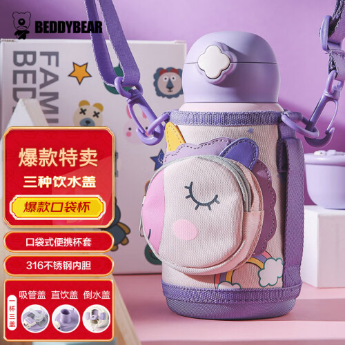 这款儿童保温杯采用316双层真空不锈钢工艺,杯身内在蕴含保温锁冷性能,多小时保温保冷,减缓杯内温度流失。倒水型杯盖设计,适合大龄儿童使用,一杯三用,配送三盖,360度防漏设计,随时饮水,不漏水,柔软硅胶嘴,高弹性,可反复咀嚼几千次,放心使用。所有塑料材质选用食品母粒,刺绣杯套,耐磨防摔,很大程度上保护杯体;内层具有高隔热,恒温作用,轻便携带。
