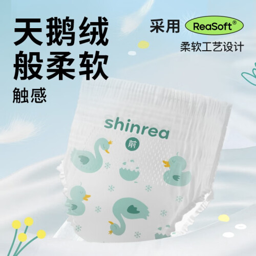 shinrea 爽然 天鹅裤 宝宝拉拉裤 XL34片,轻柔棉软,PP不易摩擦泛红,强保水强吸收能力,大吸量,不怕漏超低反渗,透气膜上布满呼吸环绕孔,空气循环流通,湿热汽迅速排出,PP不再“闷闷不乐”。