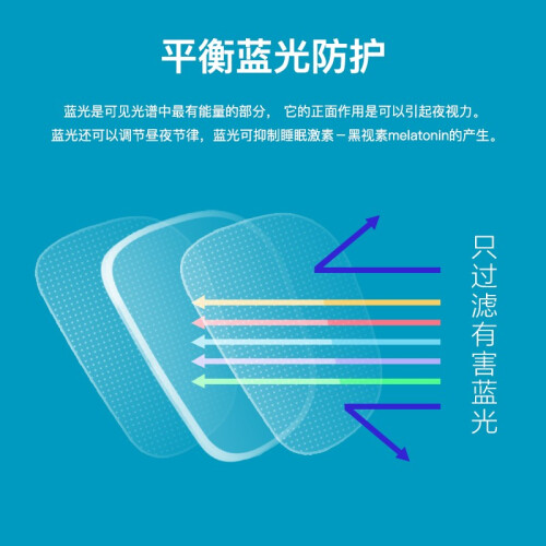 镜片达96%高透光率,全方位减少反射光视物不偏色,呈现真实色彩,20层精密防护膜层,整体提升镜片性能视觉体验加倍舒适,好用更省心双重防蓝光健康护眼新姿态舒缓眼疲劳,减少蓝光辐射伤害。